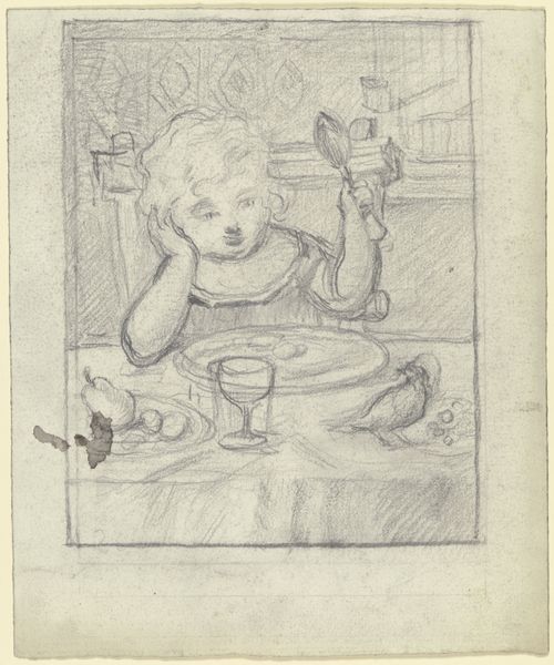 Martinus Rørbye created this illustration for "Halvhundrede Fabler for Børn" with pen and ink. Made in Denmark in the first half of the 19th century, the image presents a young child surrounded by an abundance of food – a loaf of bread, and a plate piled high with what appear to be pastries and pretzels. The child gestures towards this feast, and the image becomes a commentary on themes of childhood, innocence, and perhaps even indulgence. In the context of 19th-century Denmark, a period marked by social stratification, such an image could be seen to reflect the privileges of the bourgeois class, for whom such displays of culinary excess would have been commonplace, while for many others, famines were not uncommon. As historians, understanding the fables alongside the social conditions of the time gives us a deeper insight into the cultural values and norms of the society in which this artwork was produced. By consulting historical records we can understand the society in which this image was produced.