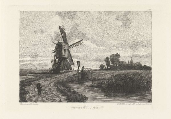 M. Baumhauer's "Molen aan het water" is rendered with an eye for the textures of the built environment and the natural world. Using only lines, Baumhauer creates a full atmospheric effect. The drawing captures a traditional windmill, a symbol deeply intertwined with Dutch history and its mastery of water management. This is not just a picturesque scene, but a depiction of a technology central to the country’s economic and social development. Notice the precision in the rendering of the windmill's structure, contrasted with the more fluid lines used for the water and foliage. This juxtaposition highlights the blend of human ingenuity and natural resources. Consider the labor embedded in both the creation of the windmill and the print. One is an elaborate feat of engineering, the other the result of skilled handwork. They are both products of specialized knowledge, tied to wider systems of labor, politics and consumption.