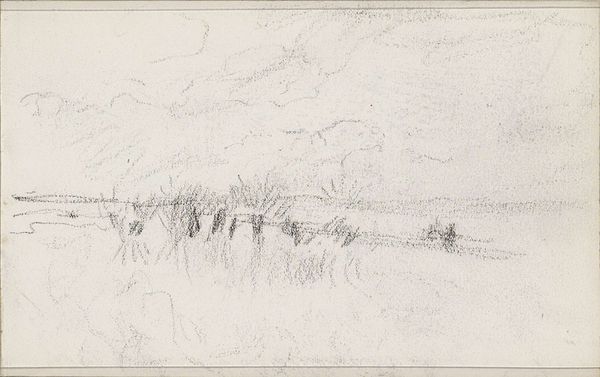 Anton Mauve made this landscape sketch, likely in the late 19th century, using graphite on paper. It's a simple combination, but the artist really pushes the medium to its full potential. Notice how Mauve creates a sense of depth and texture, with the strokes of the graphite suggesting the roughness of the earth and the stillness of the waterway. The marks of the material are clear to see, allowing the viewer to understand the artist’s process. Drawings like this were often studies for larger paintings, but they stand on their own as intimate expressions. It's also important to note the social context; the drawing depicts land that has been reclaimed and shaped by labor, with a figure and horse in the field perhaps suggesting that a life of work is underway. By emphasizing material, making, and context, we challenge any distinction between fine art and craft and appreciate the drawing's full meaning.