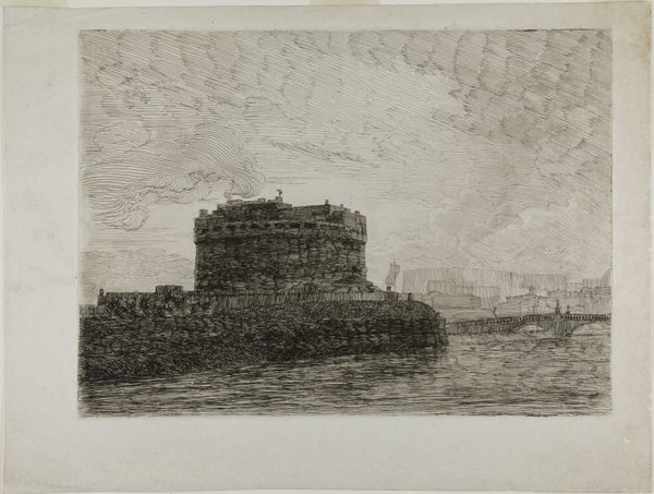 Editor: This is Wolf Vostell's "Sheet from documentation box." It appears to be a mechanical drawing. The stark contrast really emphasizes the industrial landscape. What do you make of this work? Curator: I see a commentary on the industrialized landscape and its impact on labor. Consider the means of production implied here - the drafting, printing, and even the box itself. What kind of labor produced the scene, the representation, and the documentation? Editor: So, it's less about the image itself and more about the processes that created it? Curator: Precisely. Vostell highlights the often-unseen networks of labor and materiality that shape our world. Editor: That shifts my perspective entirely. Thanks! Curator: My pleasure. Considering these elements helps us understand art as more than just an image.