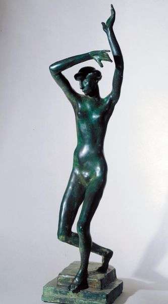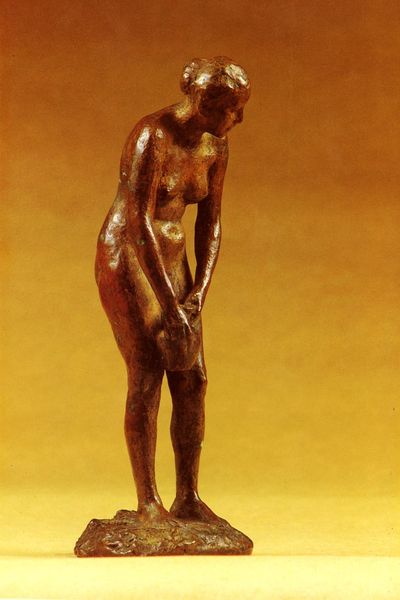 Editor: Here we have Aristide Maillol’s bronze sculpture, Venus with a Necklace. She seems so grounded, powerful even. What statements do you think Maillol is making by choosing bronze as the medium? Curator: Bronze casting in Maillol’s time involved skilled labor and industrial processes. The choice of bronze elevates the female form through valued material, yet its production situates it within a system of labor and consumption. Editor: So, it's not just about idealizing beauty, but also about the means by which we create and value objects? Curator: Precisely. How does this understanding shift your perception of Venus? Editor: I see now that this Venus embodies the intersection of art, industry, and the labor involved in creating representations of beauty. Thanks for shedding light on this! Curator: You’re welcome. Thinking about art through material and production opens up rich avenues for interpretation.