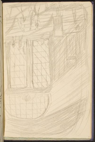 Editor: Agnes Slott-Møller’s 1912 pencil drawing, "Det indre af Bjernede Kirke" offers a peek inside this medieval Danish church. It feels preliminary, almost a ghost of a structure, yet sturdy with its geometric elements. What layers do you see in this piece? Curator: I see echoes, quite literally. This isn't just a depiction of architectural space; it's a rendering of cultural memory. The rough pencil strokes suggest a structure not just built of stone, but constructed over time, each line hinting at generations who worshipped within those walls. Editor: I’m struck by how little detail there is, and yet the arches convey such solidity. Is that contrast intentional? Curator: Perhaps. Arches, symbolically, represent more than just physical support. They're pathways, transitions, carrying both religious and historical weight. Slott-Møller uses them to suggest both the concrete reality of the church, and the abstract idea of faith moving through time. How does the geometric abstraction contribute to this effect for you? Editor: It almost modernizes it? It is, in a way, an image that is of its time but also completely outside of it, timeless. It seems the church is also, maybe, a memory of one? Curator: Precisely. And memory, as we know, isn't always perfectly rendered. Sometimes it’s a series of impressions, faded lines and symbolic echoes, precisely like what is drawn here. Editor: That reframes my entire experience! The sketch becomes a record of remembrance, both historical and intensely personal. Curator: Indeed, art invites such a blending of perspectives. And sometimes, the incomplete is more telling than the complete.