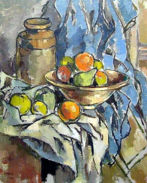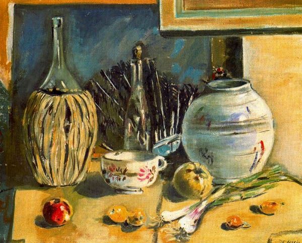 Henri Matisse made this, "Still Life With a Purro (I)," with paint – thick, juicy strokes of it. You can almost feel the impulsive energy, a real conversation happening right there on the canvas. Look closely, and you’ll see how the texture is everything. See that big green jug on the left? It’s not just green; it's a symphony of blues and greens and blacks, all layered and smudged together. It's like Matisse is building form with pure sensation. The paint is so thick, it feels like you could reach out and touch the cool, smooth surface of the jug itself. It's like he’s using paint to embody the very essence of each object. I'm reminded of Cézanne, of course, in the way he built up form through color, though Matisse is looser, more free. It's like he’s inviting us to see the world not as it is, but as a playground of color and form, always shifting, always alive.