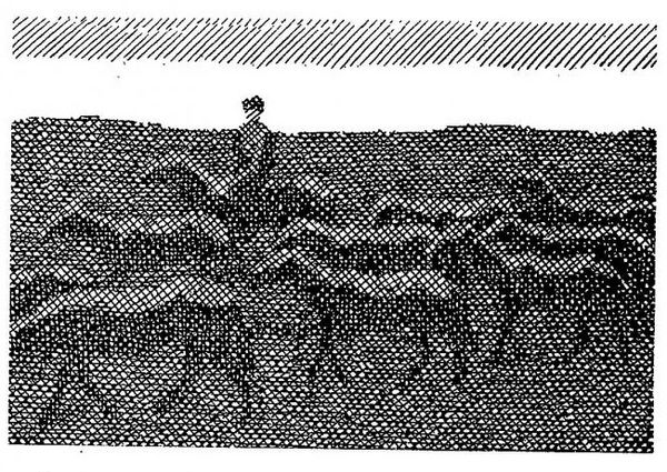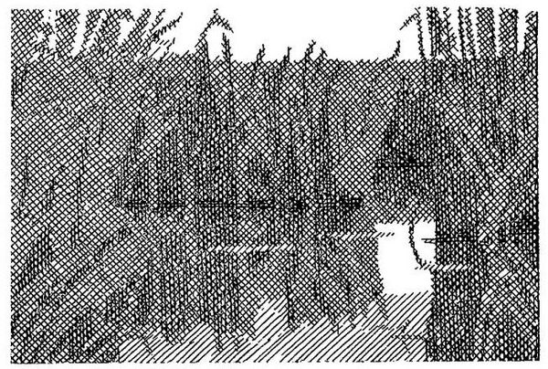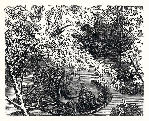 This illustration for Yevhen Gutsal's stories, made by Hryhorii Havrylenko, uses only black ink on what I imagine is a white page. It’s like a crazy dance of lines and dots, all working together to build this landscape. It’s kind of like making something from nothing. Look at the way Havrylenko uses cross-hatching in the sky, almost like a woven texture, then those simple diagonal lines suggesting depth. The trees in the foreground are almost like a dense scribble, thick and dark. I like the contrast between the solid blacks and the open white spaces. The ink feels raw and immediate. The whole thing reminds me a bit of early expressionist woodcuts, those artists were really grappling with how to make something impactful with limited means. It’s not trying to be pretty, it's just trying to be real.