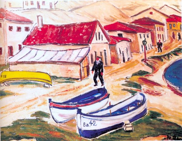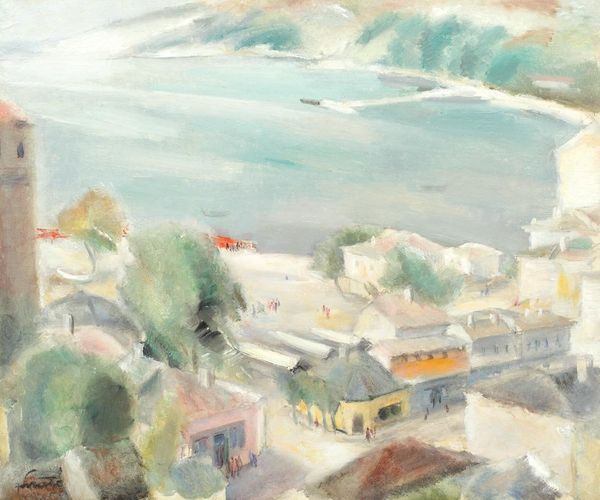 Henri Matisse made "The Bay of Tangier" at an unknown date, probably with oil on canvas. Look at how he fearlessly throws down these pure hues like he’s tossing confetti at a party! Matisse is playing with a high vantage point here. You get this amazing view of the town, where he's broken everything down into these simple blocks of color. It’s not about rendering every little detail, but about capturing the light, the feeling, the sheer joy of being there. The brushstrokes aren't trying to hide, the texture of the paint creates its own kind of energy. Check out that juicy orange building in the foreground – it anchors the whole composition. It’s like a grounding force that sets off the cooler blues and greens of the bay. This reminds me a bit of Cezanne; that same commitment to flattening space and playing with perspective. But Matisse takes it a step further, embracing a kind of wildness, which is something he would embrace even more later in his career.