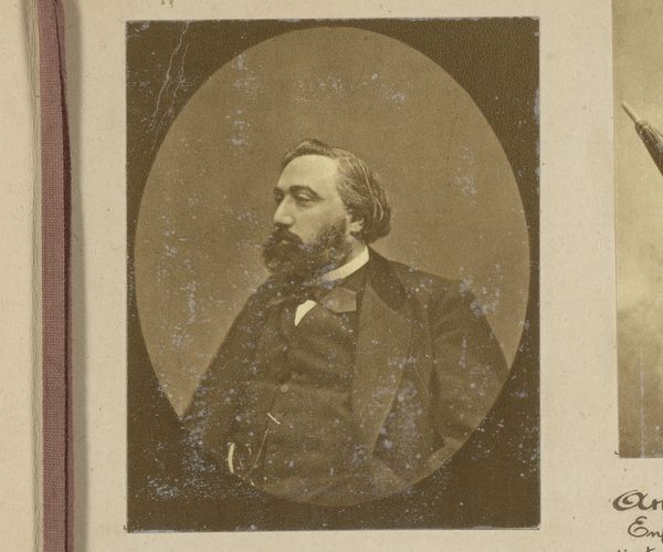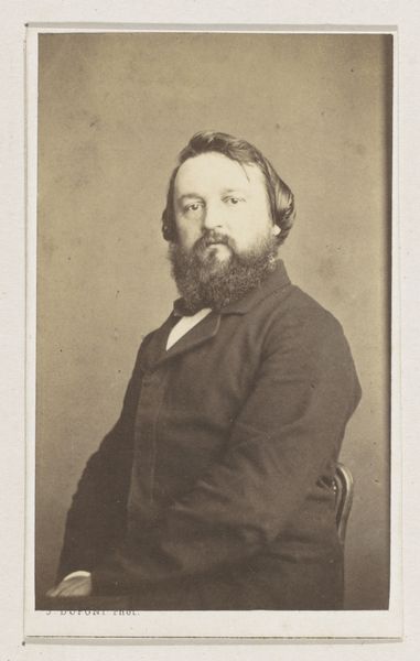 This is Joseph Dupont’s portrait of the painter Charles Verlat. Dupont, who titled himself "Phot du Roi," operated during an era when photography was solidifying its role in mirroring and shaping societal personas. Verlat, captured here in a moment of contemplative repose, presents a carefully constructed image of the intellectual artist. Note the slight disarray of his hair and beard against the formality of his coat, signaling a break from convention. The deliberate arrangement of his hands draws attention to the tools of his craft, while simultaneously deflecting the viewers gaze. This photograph speaks volumes about the performance of identity in the 19th century. It invites us to consider how artists like Verlat navigated their social roles, crafting an image that balanced bourgeois expectations with the bohemian ideals of the artistic world.