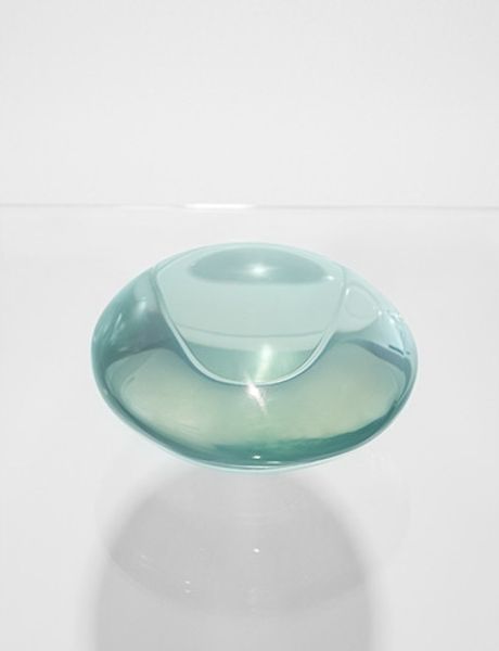 Craig Kauffman’s "Untitled" piece presents a compelling study in form and material, characteristic of his explorations in the California Light and Space movement. The artwork features a hexagonal shape with rounded edges, cast in translucent resin that fades from a vibrant pink to softer hues. At the center, a matte, metallic hexagon provides a contrasting focal point, drawing the eye into the depths of the sculpture. Kauffman’s choice of materials and color is crucial here; the glossy resin interacts with light to create a sense of depth and luminosity, challenging our perception of space. The geometry and the work’s flawless surface also give it an industrial feel. This interplay of light, color, and form destabilizes traditional notions of sculpture, inviting viewers to reconsider the boundaries between object and environment. Kauffman's work operates within a larger discourse of perceptual art, where the artwork's meaning is contingent on the viewer's experience.