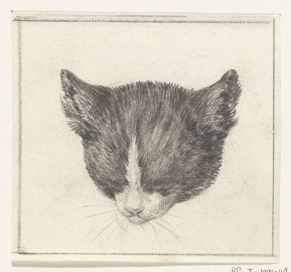 Editor: Here we have Jean Bernard’s "Liggende kat, naar rechts," a pencil drawing done sometime between 1775 and 1833. It's just a simple sketch, but the cat seems so pensive. What do you see in this piece? Curator: Well, immediately I notice the domestic intimacy. Cats, even then, were potent symbols of the home. Consider how frequently we project human qualities onto animals. The soft lines might suggest the artist's affection for the subject. Do you sense that tension between the cat as an animal, and the cat as a stand-in for human emotions? Editor: I can see that, yes! It feels like there’s a universal softness in how we view cats. But why is that so compelling to see on paper? Curator: Perhaps because drawings invite us into the artist’s process of observation and empathy. Consider the cultural context: in a time when realistic representation was highly valued, capturing the essence of a living creature like this conveyed an understanding beyond mere physical likeness. Can you see how it's a dance between realism and romanticism? Editor: I do. The precision in the face, versus the almost ethereal sketch of the body, it's striking. I learned a lot from this contrast! Curator: And hopefully, the work reminds us that seemingly simple images can contain layers of cultural memory and personal connection, prompting deeper reflections on ourselves and our relationships with the world.