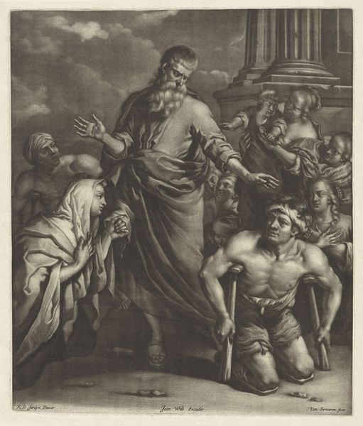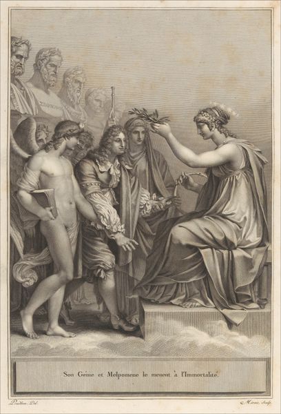 Curator: This is "Manius Curius Dentatus Refusing the Presents of the Samnite Ambassadors," by Fedele Fischetti, created between 1732 and 1792. The work depicts a historical scene rendered in pencil, charcoal, and wash, giving it a striking tonal quality. Editor: My first impression is stark. It’s austere and quite imposing despite being a drawing. The light and shadow really sculpt the figures, giving them a monumental quality. Curator: The choice of subject matter certainly reflects the burgeoning Neoclassical movement—celebrating Roman virtue and republican ideals. But I am more fascinated about how the drawing acts a form of rhetoric itself; to see how such art can speak volumes about social, political values, the importance of the community and civic duty through visual representation of the past, especially the past of republican Rome, given how class-stratified Fischetti’s 18th century was. Editor: Absolutely. It's not just the theme of incorruptibility, but how it’s visualized that draws me in. Notice how the almost-bare figures are rendered—look at the muscularity and classical forms. Curator: Note how that contrasts the opulent gifts laid at his feet; it speaks to his stoic strength. Think about the visual power of renouncing material wealth; for a society grappling with inequality this carries an inherent critique. This image provides an implicit condemnation of excess. Editor: Precisely! And how this act is materialized, depicted with the stark rendering of each object; even the composition emphasizes a sense of clarity in materials, everything distinct, refusing any suggestion of Baroque excess. It feels as if the material rendering insists on its message as much as Dentatus’ words and deeds do. Curator: Exactly, and it’s that emphasis on civic duty that allows for so many interpretive perspectives; how power should wield its influence, for example. The subject lends itself to countless discussions concerning corruption and public service. Editor: Indeed. It is a stark reminder of how intertwined artistic methods are with cultural messages. Seeing the way in which materials and artistic labor are employed here—there is a conversation that's hard to ignore about value, ethics, and making within any given system. Curator: A profound lens through which to understand not just Fischetti’s piece but any artwork navigating social and political landscapes. Editor: It certainly does that for me and allows a different engagement than simply viewing the work's message.