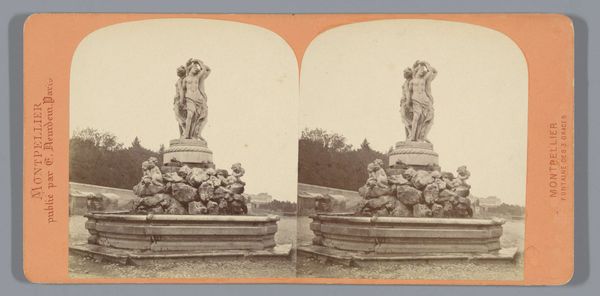 Curator: The melancholic tone of this albumen print immediately catches my attention; the way the light renders the textures almost seems to make time palpable. Editor: You're responding, no doubt, to the striking realism the artist Johann Friedrich Stiehm brought to it. We’re looking at a gelatin silver print called "Monument voor Friedrich Schiller op de Maximiliansplatz, München," which translates to "Monument to Friedrich Schiller on Maximiliansplatz, Munich," taken between 1868 and 1890. It depicts the Schiller statue that stands in Munich to this day. Curator: It feels intensely evocative. The figure of Schiller, of course, looms, rendered in such detail. I’m curious, though, about the wreath at the statue’s base. Is that a recurring motif in similar commemorative photography from the period? Editor: Yes, very insightful! Wreaths like that would have served both as literal tributes left by admirers, and symbolic gestures signifying respect and remembrance that reinforced Schiller's cultural status in Germany. His works greatly influenced the German intellectual landscape. Curator: So, this image then becomes a statement on public memory, not simply a recording of a monument. It subtly yet potently captures the ongoing role the artist and artwork continue to play in shaping collective identity. This connects directly to Stiehm's documented history with public commissions for cultural monuments throughout Germany at that time. Editor: And consider the monument’s neoclassical style! Those lines would have carried the weight of Enlightenment ideals – reason, order, and virtue. Schiller, as a playwright and philosopher, embodied many of those principles. Curator: Neoclassicism certainly aimed to link itself to the perceived stability and high-mindedness of the classical world, providing a visual language for national ideals and heroes. Editor: Thinking about this piece, the cultural and emotional impact it could still provoke given the correct viewer, this image underscores how powerful monuments are. Curator: Indeed, and Stiehm's composition here frames Schiller not just as an artist but as a lasting emblem of a particular set of values for German society during a period of great political and cultural transformation.