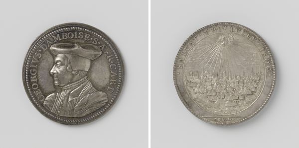 This undated silver medal commemorates the second centenary of the Reformation, honoring Ulrich Zwingli. The medal presents a portrait of Zwingli, encircled by text, and on the reverse, a depiction of an open bible upon a table, radiating light. The medal reflects a specific cultural and institutional moment. Zwingli, a key figure in the Swiss Reformation, challenged Catholic orthodoxy in Zurich during the early 16th century. This medal serves as a material expression of the historical importance attributed to Zwingli and the broader Reformation movement, two hundred years after the fact. It underscores the role of commemorative objects in constructing and reinforcing collective identities. Historical societies and religious organizations, during the early modern period, often commissioned such medals. Researching the archives of these groups could reveal insights into the medal's commission, distribution, and reception, offering us a more nuanced understanding of its role in shaping religious and social memory.