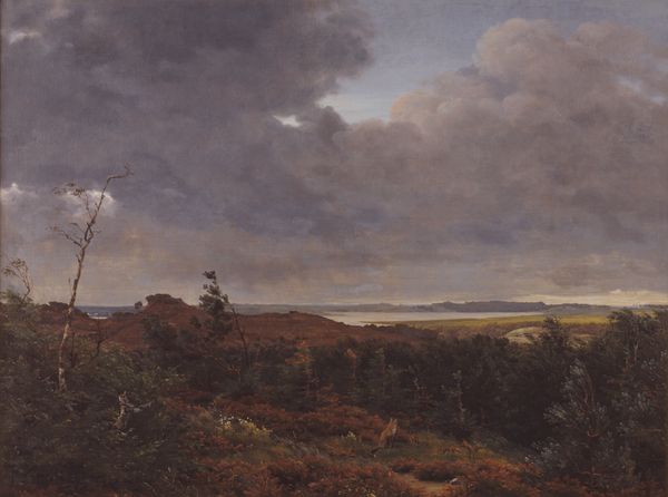 Dankvart Dreyer painted "A View towards Himmelbjerget, Jutland. Evening" using oil on canvas. Notice how the light infuses the landscape, particularly that lone, skeletal tree standing starkly against the soft horizon. This motif of the solitary tree, a common sight in Romantic landscapes, has roots stretching back to antiquity. Often, it is used to symbolize mortality, resilience, or the interconnectedness of life and death, as seen in Northern Renaissance prints. Consider how Dreyer might have subconsciously tapped into this well of imagery, presenting us with a symbol loaded with profound emotional weight. The setting sun too, speaks to the transient nature of existence, engaging our deepest fears and hopes. The cycle continues: these symbols are not static, but living entities, constantly reinventing themselves in the collective consciousness.