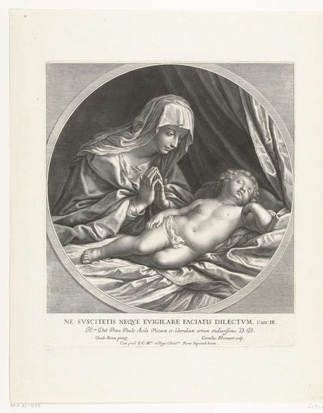 Philippus Velijn created this small monochromatic print, "Man with bow and arrow with a sick woman by a hermit," sometime before 1836. The composition is structured around a play of contrasts: youth and age, vulnerability and care, nature and the spiritual. Observe how Velijn uses line and shading to articulate the figures and their emotional states. The tension between Cupid's protective stance and the hermit's offer of solace creates a compelling narrative. The very materiality of the print—its etched lines and tonal gradations—enhances this dramatic interplay, inviting us to ponder the symbolic weight of each character. The hermit's presence at the margin of the natural world may signify a moment of crisis, a disruption in the natural order. The visual emphasis on the line, light, and shadow directs our gaze to the unfolding drama, suggesting that meaning resides not just in the narrative but in the very structure of the image itself.