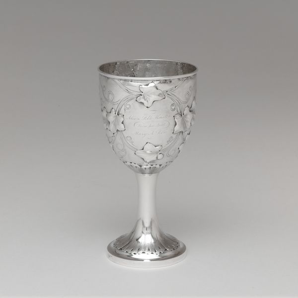 Editor: Here we have a Beaker, crafted in 1816 by William B. Heyer. It's fashioned from silver, lending it a cool, almost austere elegance. I’m curious – what does this seemingly simple object say to you? Curator: It whispers stories, doesn't it? Think about it – this wasn’t mass-produced; someone, likely with great skill, hammered and shaped this silver, breathed life into it. Its very simplicity becomes profound. What do you imagine it held? Editor: Perhaps water, or wine? Something precious, given the material. Curator: Precisely. Beyond its function, though, it embodies early 19th-century ideals. Note the unadorned surface. It speaks to a restrained aesthetic. This beaker could be a reflection on Neoclassical values: simple forms, subtle refinement. A visual metaphor, if you will, for an ordered society. Can you make out the engraved initials? Editor: Yes, "HHC," just above the date. Almost like a signature, isn't it? Curator: In a way. It grounds it. Makes you wonder about HHC – their life, their aspirations. It's more than a beaker; it’s a quiet meditation on time, artistry, and human connection. Maybe this little beaker has outlasted all of the owner’s ambitions… it is, after all, still here! Editor: I see what you mean. It's amazing how a simple cup can hold so many layers of meaning. Thank you for opening my eyes to it! Curator: My pleasure. Now, how about we ponder something a little more… flamboyant?