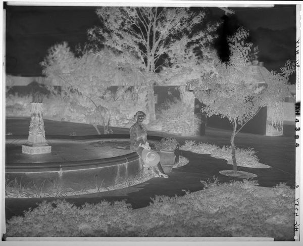 Editor: This is an untitled black and white photograph by Lucian and Mary Brown, showing a backyard decorated for a luau, with tables and tiki torches. The symmetry is striking, but there's something unsettling about it. What do you see in this piece? Curator: It’s fascinating how a seemingly innocuous scene can reveal deeper cultural dynamics. The luau, often presented as a symbol of Hawaiian hospitality, has a complex history rooted in colonialism and the commodification of Indigenous culture. Editor: So, the image is less about celebration and more about… appropriation? Curator: It invites us to consider the ways in which cultural practices are extracted and reshaped for consumption, often obscuring the original context and power dynamics at play. How do you think this image challenges or reinforces those dynamics? Editor: I see what you mean, it definitely makes you think about the whole picture. Curator: Exactly, viewing art through a critical lens helps us recognize these histories.