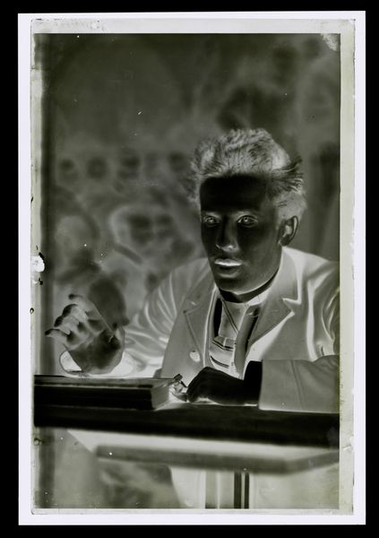 Curator: Here we have an intriguing portrait from the Hamblin Studio, presently held at the Harvard Art Museums. It’s an untitled image, capturing a woman with eyeglasses and a rosary. Editor: It's arresting, isn't it? The inverted tones lend her such a spectral, almost otherworldly presence, like a character from a gothic novel. Curator: Indeed. The reversal of light and shadow amplifies detail, and the rosary juxtaposed with her eyeglasses hints at a blend of faith and intellect, I feel. Editor: I wonder about the artist's intention. Was this a conscious choice to evoke a specific mood, or simply a technical limitation of the time? Curator: Perhaps a bit of both. The Hamblin Studio likely navigated the constraints of early photography, but there’s undeniable artistic intent in capturing her serene gaze. Editor: It's a portrait that lingers, compelling us to consider the sitter’s story, her inner life reflected through these ghostly inversions. Curator: Precisely. It reminds us that art, like memory, can transform and reveal in unexpected ways.