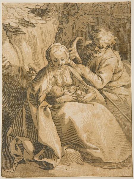 Albrecht Dürer rendered this drawing of the Holy Family with angels under trees with ink on paper. Look closely at the tender group of angels gathered at Mary’s feet; their presence invokes a sense of divine protection. Notice how Dürer places the Holy Family beneath a tree, a motif we can trace through centuries of art. In medieval tapestries, the Tree of Life symbolizes spiritual nourishment and immortality. Here, the tree's sheltering branches may offer a similar sense of refuge. The tree is a recurring image, from ancient pagan rituals to Christian iconography, adapting across cultures and eras. It surfaces in the Renaissance, not merely as set-dressing but laden with symbolic weight. It resonates deeply with our collective memory, tapping into subconscious associations of shelter and growth. It's a testament to the enduring power of visual symbols, continually evolving in their meaning, yet perpetually engaging our imagination.