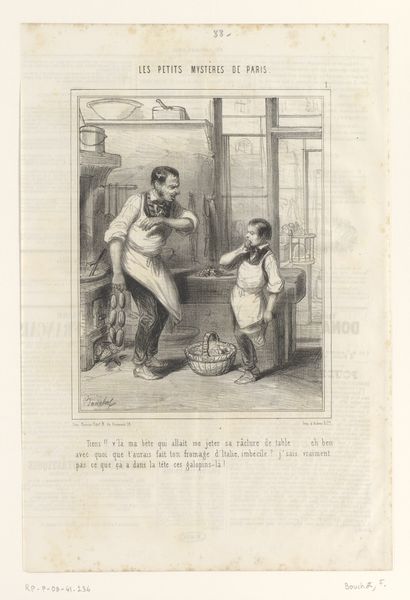 Paul Gavarni made this lithograph called ‘Planchette getuigt voor de rechtbank’ in France. This translates to ‘Planchette testifies in court’. Gavarni was commenting on the social structures of his time, particularly the fascination with spiritualism and its intersection with the legal system. The image shows a man, presumably Planchette, testifying in court, possibly under the influence of a séance. Planchette was a small, flat piece of wood equipped with castors and a pencil, used to produce automatic writing through spiritualism. The judge and other parties seem skeptical. Gavarni critiques the absurdity of relying on such methods in a formal setting like a court of law. The print suggests a deeper commentary on the gullibility of society and the blurring lines between belief and evidence. We can consult publications of the time, legal documents, and popular spiritualist texts to fully understand the social context. In doing so, we can appreciate the power of art to challenge social norms and expose the contradictions of its time.