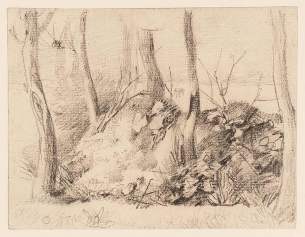 Editor: Here we have Fragonard's "Meadow with Trees," a pencil drawing. It feels so immediate, almost like a snapshot. What's striking to you about it? Curator: Well, it's fascinating how Fragonard uses a seemingly simple landscape to negotiate the changing role of nature in art and society. Consider the burgeoning middle class and their desire for pastoral imagery. Does this drawing reflect an escape from urban life, or perhaps, a constructed ideal? Editor: A constructed ideal... That’s interesting. I hadn’t considered the social aspect. It seemed so personal. Curator: Exactly! And that tension between the personal and the social is where the power of art often lies. Did exploring this artwork shift your perspective? Editor: Definitely. I see it now as less of a simple sketch and more of a commentary on its time.