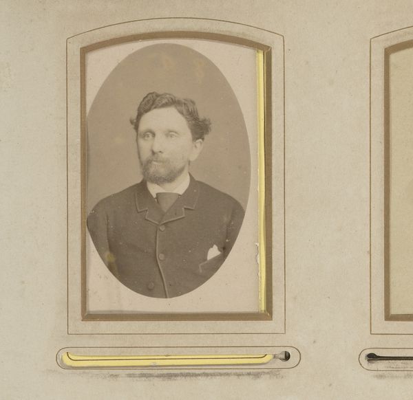 Editor: Here we have "Portret van een man met snor" created sometime between 1857 and 1898 by P. Siewers & Zoon. It's a portrait within an oval frame on aged, warm-toned paper, giving it a very antique feel. What strikes me is the man's expression; it seems so…ordinary. What do you see in this piece? Curator: What I see is a complex layering of social expectations and the burgeoning representation of the individual during the late 19th century. The very act of commissioning a portrait, especially in this photographic medium, speaks to a desire for visibility, to inscribe oneself into history. How do we read this desire, understanding that photographic portraits at the time were predominantly accessible to the middle class and above? Editor: That's interesting. So you’re saying this wasn’t just about vanity? Curator: Precisely. Consider the sitter’s attire—a modest suit and tie. It signals a certain level of respectability and adherence to societal norms. But also, this image's existence begs the question: what stories of those excluded from such representation, like the working classes or marginalized communities, are we missing? How does this portrait both reflect and reinforce the power dynamics of the era? Editor: I see what you mean. The seemingly simple portrait becomes a lens through which to examine broader social issues. Curator: Exactly. The image prompts us to critically engage with history. What can we uncover beyond the sitter's face, examining who had access to representation and how they were presented? Editor: I hadn’t considered the implications of who *wasn’t* being photographed. It gives a completely different dimension to understanding art history. Curator: Precisely. It transforms a seemingly passive object into a tool of critical historical inquiry. Editor: I'll definitely be looking at portraiture differently now. Curator: That’s the goal - to see art as actively shaping, reflecting, and challenging our understanding of society.