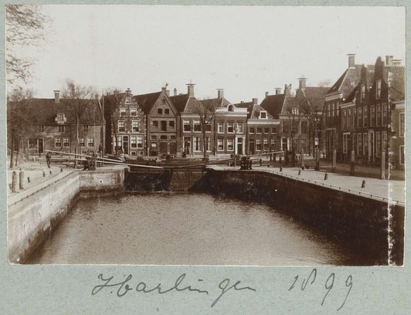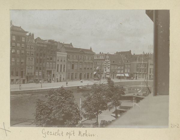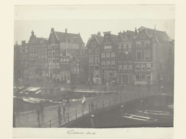 Curator: Hendrik Herman van den Berg captured this view of Muntplein and Rokin, sometime before 1894. The sepia tones give the street scene a distinctly antique quality. Editor: Yes, it does have that quality. The photographic print feels quite melancholic. It's as though the monochrome palette leaches the vitality from what must have been a bustling scene. What strikes me first is its layered composition—buildings stacked closely, creating both depth and a feeling of compression. Curator: Van den Berg certainly exploits the pictorialist style here. The slightly soft focus contributes to that sense of timelessness, but also elevates a seemingly ordinary cityscape. In doing so, Van den Berg encourages the viewer to really study and admire it. Consider the positioning; what might its historical context reveal? Editor: Certainly. This photograph emerges during a time of great urban change, specifically towards the latter half of the 19th Century. Amsterdam itself experienced dramatic expansion. Viewing photographs like this allows insight into the city’s representation during the rapid modernization and subsequent shift to social changes. I would posit that its style could also reflect attempts to soften industrial encroachment through romanticised imagery. Curator: I appreciate that interpretation of representing a quickly developing urban scene. But I would ask whether it perhaps, in part, represents an example of street photography. Note the inclusion of the populace here, as active components within the setting; each group almost forms separate, yet interlocking elements of spatial composition. How the various buildings converge almost as if in dialogue with one another. Editor: A fascinating juxtaposition, seeing that urban dynamism through the photograph. It leaves you reflecting on which interpretation really represents van den Berg’s true intentions with the artwork. Thank you for expanding the experience. Curator: It seems like that constant interpretative dilemma is why it's exciting to look at visual art!