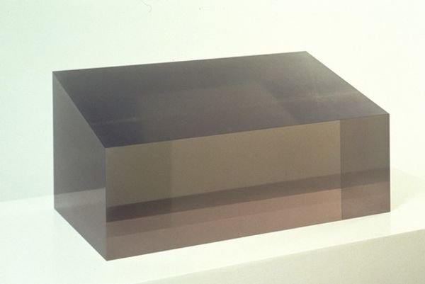 Curator: At first glance, this looks like pure, unadulterated serenity. Just a big, luminous square floating there. It’s calming, isn’t it? Like a visual sigh. Editor: It certainly evokes a certain tranquility. We are looking at "Window," a 1969 resin sculpture by Peter Alexander. It's representative of the Light and Space movement that thrived in Southern California during that time. Curator: Ah, California. Makes sense. It does feel like bottled sunshine. What strikes me is the way it plays with perception. Is it solid? Is it light? Is it reflecting something? The whole thing is so...shifty. Editor: Alexander was particularly interested in capturing and manipulating light. He uses resin to create these translucent forms, playing with how light passes through them and interacts with their surfaces. He's known for this. Curator: Resin, eh? I bet that feels incredible to touch. Almost like a frozen pool of light, right? But that’s typical for that whole LA scene. This kind of hard-edge thing is something the museums lapped up as properly and safely "modern" at the time. Editor: There was a market for it. That’s certainly a consideration. These works occupied this interesting place where painting and sculpture met. "Window," being relatively immaterial, forces the viewer to focus on the phenomenological experience. Curator: Phenomenological, fancy! I just know it makes me feel lighter somehow. Less…stuck. Does that count? Editor: It absolutely counts. I mean that's arguably part of the point. These works weren't so much about telling a story as providing a sensory encounter, a pause. Curator: And in our noisy, hectic world, a pause is pretty radical. Thank you for putting a name and era to the sunshine-square. Editor: My pleasure. Art history can help ground personal responses but the piece belongs to anyone engaging with it today.
