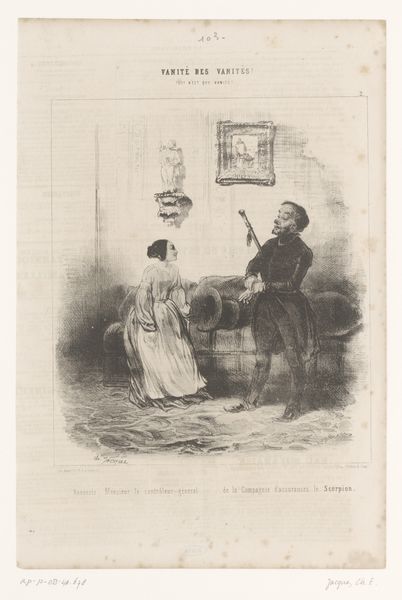 Constantin Hansen made this print, "A Hunter Showing a Little Girl his Prey," using an etching technique. It's all about the lines here, isn't it? Think about how Hansen would have worked, covering a metal plate with a waxy, acid-resistant ground, then scratching through it with a needle to create his image. The plate would then be immersed in acid, biting away the exposed metal. This process, known as etching, allowed him to create incredibly fine details and textures, you can see it especially in the girl's dress, and the way the hunter’s jacket conveys weight and substance. The image is imbued with cultural significance. You can consider the role of hunting in 19th-century society, and how it reflected the relationship between humanity and the natural world. What does it mean to present a dead bird to a child? Hansen really pushes the boundaries between fine art and craft, using a printmaking technique to explore narrative themes. He shows us that the way an artwork is made, and the materials used, are key to understanding its full meaning.
