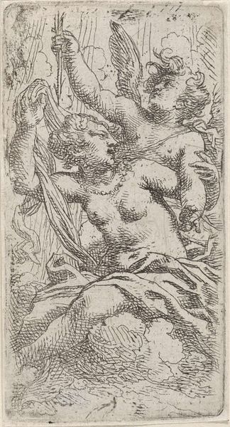 This tiny engraving, “Putto met wapenuitrusting,” was created by Heinrich Aldegrever, a German artist working in the 16th century. Aldegrever lived during the Protestant Reformation, a time of great social and religious upheaval. As an artist, he navigated the complex politics of his era, creating works for both Protestant and Catholic patrons. Here, we see a winged putto, a symbol often associated with love and innocence, struggling to hold up a suit of armor. In a society undergoing immense religious conflict and war, it’s hard not to interpret this piece as a commentary on the weight of violence carried by the innocent. The putto’s awkward pose and strained expression evoke a sense of burden and imbalance. The engraving invites us to reflect on the costs of conflict, and how innocence is often caught in the crossfire.
