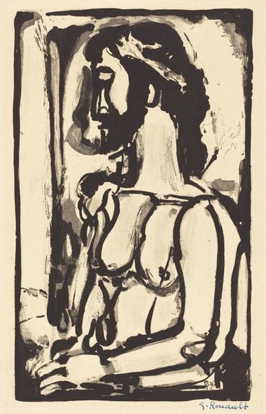 Editor: This is Henri de Toulouse-Lautrec’s "Jane Avril Dancing", created in 1892 with coloured pencil. I find it incredibly energetic. The sketchiness gives the dancer such a sense of movement. What catches your eye when you look at this work? Curator: Energy, absolutely! It's as if Lautrec captured a fleeting moment, the ephemeral quality of a performance. And you feel that vibrant Parisian nightlife oozing from every line, don't you? Tell me, does the somewhat unfinished quality add or detract, in your view? Editor: I think it adds! It feels modern, immediate... like a glimpse. Does this reflect Lautrec's wider style? Curator: Spot on! Lautrec had this way of boiling down form to its raw essence, didn't he? That’s why his work feels so incredibly contemporary, even now. And that striking blue... it anchors the whole image. Notice how that color isn't traditionally "feminine," yet here it dominates a dancer’s figure. Makes you wonder about his intentions, doesn't it? Editor: Definitely makes you rethink what is going on. It is interesting how it could symbolize the grit of the Parisian lifestyle versus her elegant persona as a dancer. I didn't notice that until you pointed it out! Curator: Exactly! It's a bit rebellious, pushing against expectations. Lautrec was such a master of suggestion, hinting at stories beyond what’s immediately visible. And stories which he might have not known himself when the art was created. How amazing is it to find your own inspiration centuries later?! Editor: Wow, now I see so much more depth to this seemingly simple drawing. It is indeed thought-provoking, leaving a lingering impression!