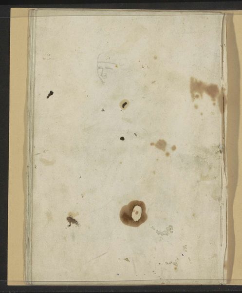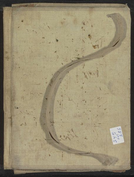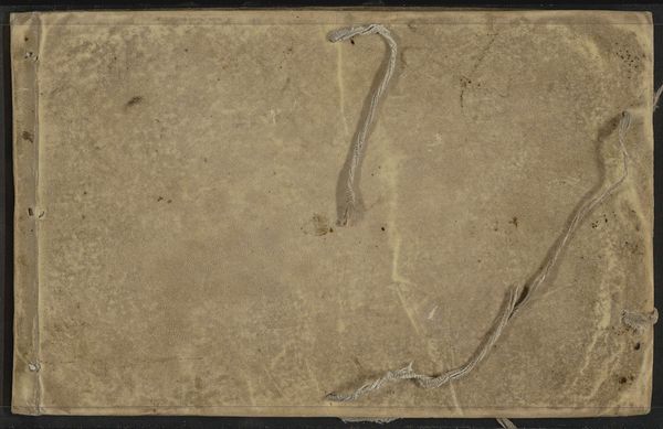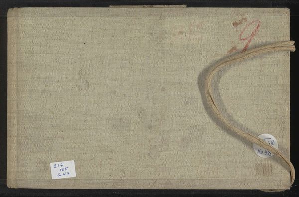 This sketchbook, made by Willem Witsen in the late 19th or early 20th century, is constructed from paper and bound in a textured cloth cover. The dimensions are modest, making it a portable companion for an artist capturing fleeting moments. The sketchbook’s materiality speaks to its function. The paper, though unseen, is fundamental, and the cloth covering offers durability, hinting at the book's intended use in the field, or in bustling cityscapes. The cover also bears the marks of time, with stains and wear suggesting a life of use. The binding and the fastening cord represent a level of handcraft, contrasting with the mass-produced paper within. In its totality, the object embodies a convergence of industrial and artisanal methods, reflecting the changing landscape of artistic production during Witsen's time. Considering the sketchbook as an object in itself, we recognize the value in understanding its material history, its use, and its place within broader social and economic contexts. This approach blurs the traditional boundaries between art, craft, and design.