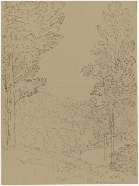 Hendrik Voogd made this landscape drawing with pen and brown ink around the late 18th or early 19th century, during a time when artists were captivated by nature and its ability to evoke emotion. Voogd, a Dutch artist who spent much of his career in Italy, brings a northern sensibility to the Italian landscape. The drawing isn't just a depiction of trees; it's an exploration of form and texture. Notice how the lines create a sense of depth and space, inviting you to wander into the scene. What do you feel as you imagine yourself standing among these trees? During this period, there was growing interest in the sublime and the picturesque in nature. Artists sought to capture not just the beauty, but also the emotional impact of the natural world. Voogd’s drawing reflects this pursuit, inviting us to contemplate our place within the grand scheme of nature.