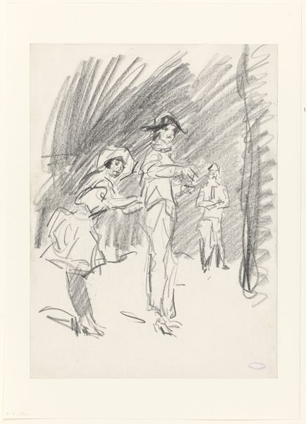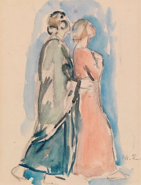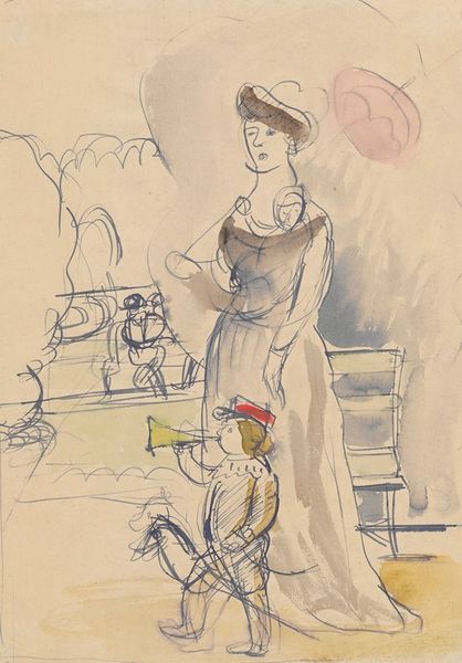 Maurice Prendergast made this watercolor, "Park Scene," in the late 19th or early 20th century, capturing a moment of leisure and observation. Prendergast's work often depicted social scenes, particularly those of urban leisure among the upper and middle classes. The painting provides a glimpse into the social dynamics of its time, marked by distinct gender roles and class distinctions. The women, adorned in fashionable hats and dresses, occupy their time with decorum. The artist captures the nuances of these gendered performances. While Prendergast's style is celebrated for its modernity and vibrant portrayal of everyday life, it is also important to acknowledge that his work, like many from this era, offers a limited perspective, primarily reflecting the experiences of white, privileged individuals. Prendergast invites viewers to consider the complexities of representation, inviting reflection on how art can both reveal and obscure the full spectrum of human experience.