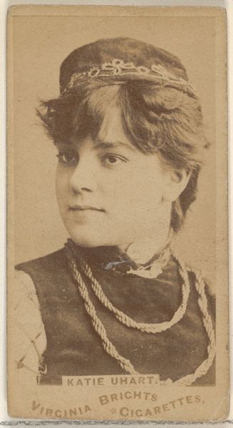 Editor: Here we have Card 302 from the "Actors and Actresses" series, a tobacco card from sometime between 1885 and 1891 by Allen & Ginter. It depicts a portrait of a woman in sepia tones, giving it a kind of old-fashioned feeling. I’m curious about this card as an object in its own right. What’s significant about this sort of everyday image being in a museum? Curator: It’s crucial to consider the power dynamics at play in what gets preserved and displayed. Tobacco cards like this one, distributed by companies like Allen & Ginter, were a form of early advertising. Featuring actresses helped sell cigarettes, turning these women into commodities. Think about the institutional forces needed for something like this to get into a museum, moving from mass consumer product to valuable art object. Editor: So, you're saying it raises questions about celebrity culture and advertising? Curator: Exactly. How does the museum's display of this card reinforce or challenge those initial commodifying intentions? We have to ask who benefits from this actress’ image being preserved and who doesn’t. Does the museum’s display grant her agency or further objectify her? Editor: That makes me think about how different it is now with celebrity endorsements everywhere. These cards feel so quaint, yet the mechanism is the same. Curator: Yes! And who were these actresses? Were they consulted about their images being used this way? It is vital that we analyze the card within its social and economic context. Editor: I see what you mean. It's more than just a pretty picture; it's a snapshot of the relationship between fame, consumption, and the female image in the late 19th century. I never thought about these issues going in! Curator: It’s a continuous conversation, and museums are active participants in that dialogue. Looking at these everyday images critically opens up a whole new perspective.
