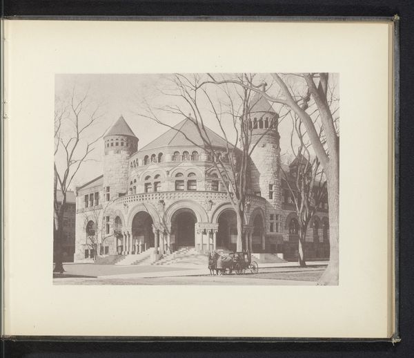 Reproductie van een ontwerp van een gezicht op de Pollard Memorial Library te Lowell before 1892