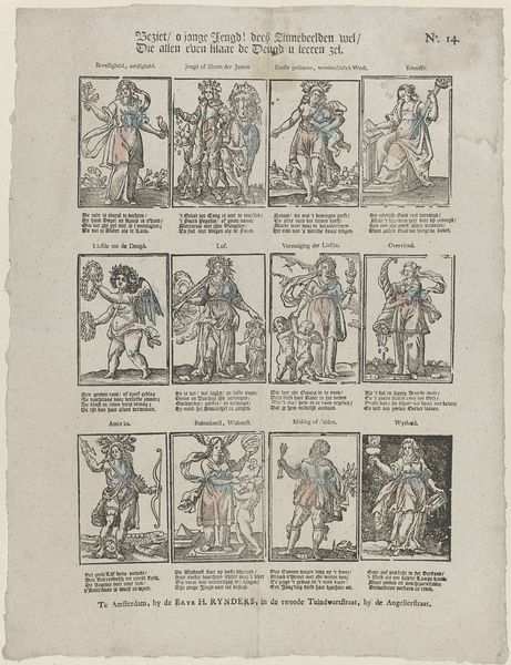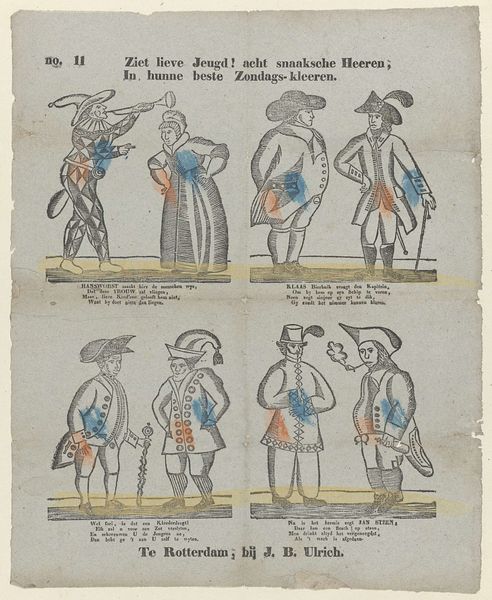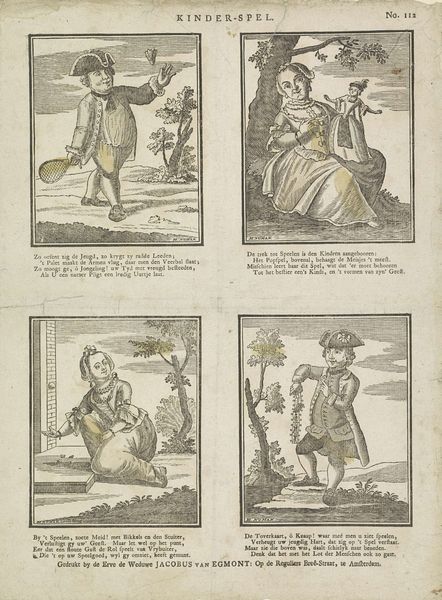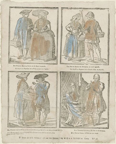 This print was made in Amsterdam by Johannes Kannewet. It's a series of images that are accompanied by text. It depicts members of the Dutch upper classes in their finery. Images like this provide us with visual codes which speak volumes about the social and economic structures of 18th century Netherlands. The geography of the low countries allowed the Dutch to become a major trading nation. As they grew in wealth, the Dutch developed a distinctive identity in which images of prosperity played a significant role. Looking at the way that men and women are represented in this image, we can see how they used fashion to indicate their social class and wealth. To understand more about the nuances of how class and gender were communicated in the Dutch Republic, you might want to explore the Rijksmuseum’s online collection and compare this to other fashion plates of the period.