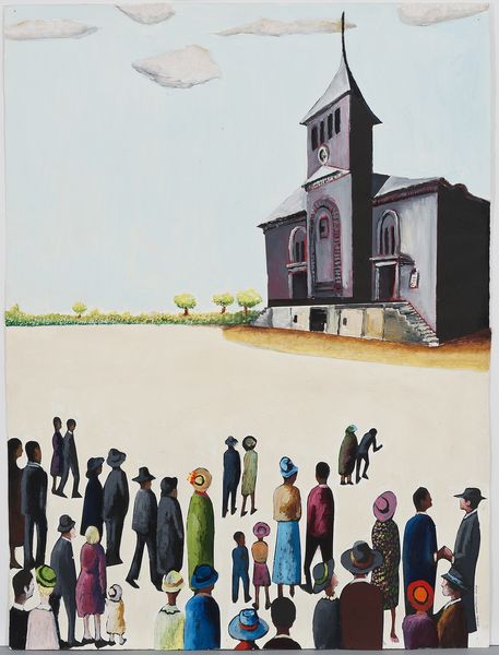 Benny Andrews made this painting, Savannah's Credit Card Protest, with oil and collage on canvas. There is something so raw about the paint, like seeing the world in a single, immediate gesture. Look at the flatness of the figures; they remind me of cut-outs, especially those in the foreground, carrying their baskets. The paint is applied in thin layers, almost translucent in places, creating a surface that feels both fragile and resilient. This connects with the theme of protest, the people are present and demanding change. The muted colors, mostly browns and grays, make the scene feel like a memory. Yet, there's a tension between the flatness of the figures and the illusion of depth in the street, between the representational scene and the formal elements of the painting. Andrews' work, with its combination of painting and collage, always struck me as an ongoing conversation, a way of embracing multiple perspectives and histories at once. It's like Romare Bearden meets Philip Guston, where storytelling and social critique blend. It's never just one thing, and that’s what makes it so compelling.
