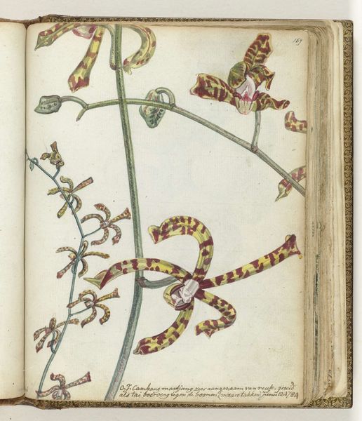 Editor: So, this is "Kaaps weidekruid," or "Cape Meadow Herb," possibly painted between 1786 and 1789 by Jan Brandes. It's a watercolor drawing on paper, part of a botanical study. The detail is just incredible, almost like a scientific illustration. How do you interpret this work? Curator: Looking at this drawing, I'm drawn to considering it as more than just a botanical record. How does this work speak to the history of colonialism and the exploitation of natural resources? Brandes was working for the Dutch East India Company. We need to consider how his perspective might have been shaped by the imperial project. What stories aren't being told in this image? Editor: That’s a really interesting point. I hadn't thought about it in terms of colonialism. The meticulous detail now makes me consider it like an inventory or survey of resources. But what about its scientific value? Curator: Of course, these illustrations held scientific value. However, let's remember the social and economic context that made this kind of detailed botanical study possible. This herb might have had a completely different meaning and use to the indigenous people of the Cape. This romantic style tends to erase the people that the colonizers found at the territory. Editor: I see what you mean. The image is beautiful and precise, but perhaps we should consider what has been lost by framing it solely as scientific or aesthetic observation. Curator: Precisely. Reflecting on the intersection between art, science, and colonial power opens our eyes to understanding complex historical narratives, while making a clearer commitment with marginalized voices from the past and present. Editor: Thanks, it gave me much more to think about, particularly the complex motivations that might lay beneath the seemingly objective representation of nature.
