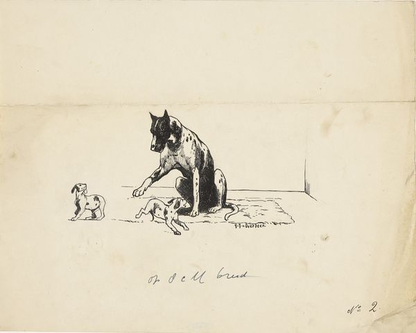 This is an ink drawing entitled ‘En liggende hund’ depicting a reclining dog, made in 1845 by an anonymous artist. The image offers a glimpse into 19th-century Danish society, where the depiction of animals often symbolized social status and domestic ideals. Dogs, in particular, were frequently portrayed as loyal companions, reflecting the values of fidelity and domesticity. The dog, likely a specific breed popular at the time, is shown wearing a collar, indicating its status as a domesticated animal, and perhaps a symbol of ownership and control. The anonymous nature of the artist invites speculation. Was it perhaps a commissioned piece by a wealthy patron, or was it a more personal study? Regardless, the drawing provides insight into how animals were perceived and represented in art during this period. Its simplicity invites contemplation on the relationships between humans and animals.