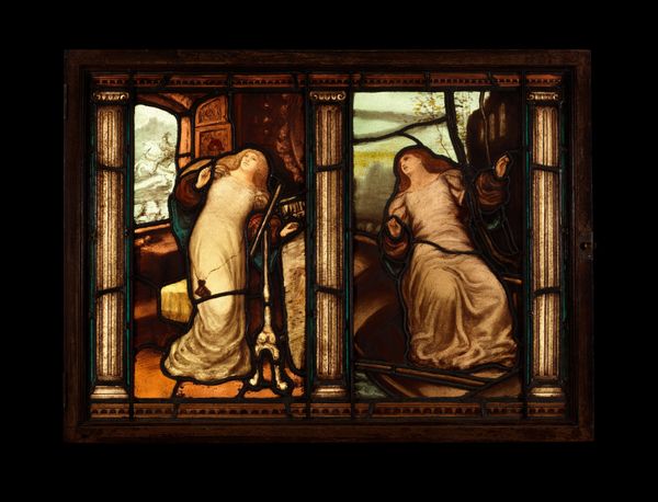 Luc-Olivier Merson created "Danse de fiançailles," a stained glass artwork with dimensions of 243.8 by 304.8 cm, around the late 19th or early 20th century. Consider the historical context: Merson lived during a time of significant social changes and his art often reflected an interest in historical and romantic themes. The artwork shows a scene evoking an idealized, pre-modern past, and the representation of gender roles is traditional, with women depicted as the focus of the dance. Engagement was one of the few sanctioned moments of public intimacy. How do we feel about the depiction of this ritual now? Does it evoke a sense of nostalgia, or does it remind us of the limitations placed on women in the past? Are you reminded of your own experiences of courtship rituals, or do you feel distanced from the scene depicted? The beauty of the stained glass and the romanticized vision of the past ask us to reflect on how we negotiate tradition and modernity in our own lives.