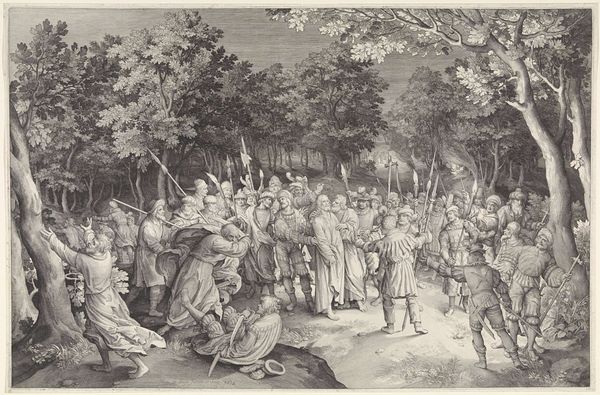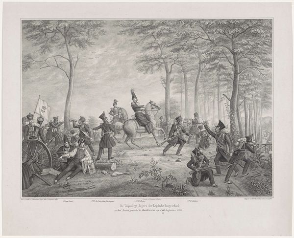 Editor: This is William Holbrook Beard's "The Bear Dance," created around 1870 using oil paint. It's quite a spectacle! So many bears in human poses, gathered in what looks like a festive celebration in the woods. What I find most striking is its rather satirical or whimsical atmosphere, even while portraying a sort of orderly chaos. What do you see in this piece? Curator: Well, what immediately leaps out is the continuation of folklore and cultural memory that this "Bear Dance" evokes. Anthropomorphism, giving animals human characteristics, is an age-old symbolic tool. Think about the tales and fables we tell, across different cultures. Bears often symbolize strength, primal instincts, but also, interestingly, vulnerability. Why do you think Beard might have chosen bears specifically for this genre painting? Editor: Maybe it's the contrast? Bears are these powerful, wild creatures, but here they are, mimicking human social rituals like dancing and feasting. It's inherently funny. Curator: Precisely! The humor is key, but it is insightful and socially relevant. Are there elements, perhaps costumes or postures, that strike you as alluding to particular human behaviors or even social classes of the time? Perhaps symbols of the aspirational or perhaps a reminder that underneath our human constructedness and costumes, we all are animals nonetheless? Editor: I do see that some bears are more formally dressed, one even seems to be playing the drums! The detail is amazing. I never considered how much meaning could be packed into what seemed at first just a humorous painting. Curator: Indeed! And it’s that layering of meaning, drawing from deep-seated cultural associations and symbolic language, that makes this piece so engaging and worth contemplating. There are threads and themes running through the human psyche that we see emerge over centuries and across continents, expressed by those with the skill to illuminate it. Editor: I agree; I'll never look at anthropomorphic paintings the same way again.