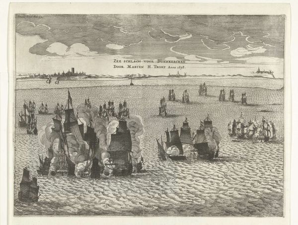 Editor: This drawing, "Beach Scene," is reminiscent of Turner's style and is currently held at the Harvard Art Museums. It feels so expansive, but also somehow contained by the muted palette. What compositional elements stand out to you? Curator: Note the masterful use of line to define form and space. The stark contrast between the dark, angular pier on the left and the hazy, indistinct horizon creates a dynamic tension. Observe the delicate application of the medium, allowing the support to contribute to the atmospheric effect. Editor: So the composition itself, the balance between the defined and the undefined, is key to understanding the work? Curator: Precisely. The artist invites us to consider the interplay of solidity and ephemerality, the concrete and the abstract. Editor: Fascinating, I hadn't considered how the medium enhances that duality. Curator: Indeed, form and content are inseparable.