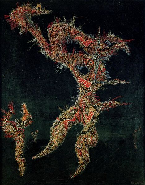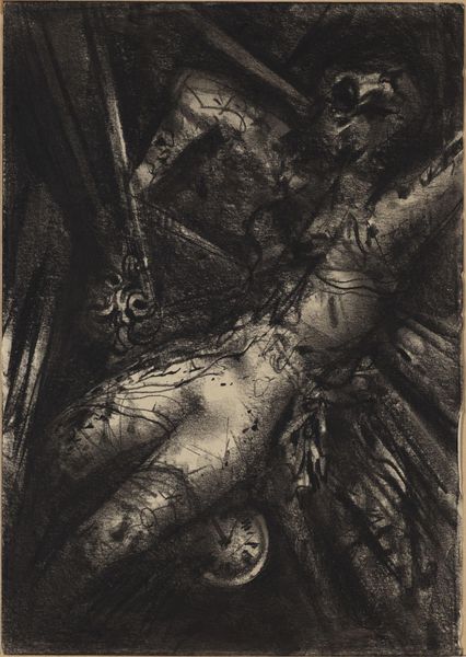 Editor: Alphonse Mucha's "Study of Figures," created around 1900, appears to be a pastel or charcoal drawing. There’s something very haunting about the piece, the way the figures seem to emerge from the darkness. It feels like a half-remembered dream. What do you see in this piece, something that I might be missing? Curator: You know, it’s interesting you say ‘haunting.’ I agree! Mucha, even in his studies, was such a master of atmosphere. For me, it's about the *suggestion* of form. Look how he uses light and shadow - those almost frantic, scribbled lines – to imply the human figure. It's less about accurate representation and more about capturing an *essence*, a mood. Are the figures comforting to look at, or do they unsettle you further? Editor: Definitely unsettle. There's a real ambiguity there – are they embracing, or struggling? And the muted colors add to the sense of unease. Curator: Precisely! Mucha often played with symbolism. Think of those late 19th-century symbolist painters. And notice, that for this study, Mucha didn’t need bright colours or clearly defined shapes to speak volumes about human connection…or lack thereof! It’s what isn’t said, what isn’t fully revealed, that truly captures my imagination. You almost fill in the blanks with your own feelings. Does this artwork say something more personal to you now? Editor: It really does. I initially just saw it as a sketch, but hearing you speak about capturing a mood, it takes on a whole new level. I almost feel the ambiguity as a strength. Curator: That's the magic of art, isn’t it? To see something initially and then, through discussion and reflection, have it reveal a whole new depth of meaning. Editor: Absolutely. Thank you for the insights, I learned so much today!