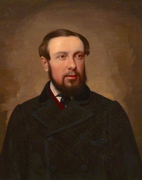 William Bouguereau painted this self-portrait, now held at the Montreal Museum of Fine Arts, using oil on canvas. The portrait draws us in with its study of texture and light across a limited range of color. Bouguereau’s formal approach to his own image is quite revealing. Notice how the composition uses a subtle asymmetry to avoid stiffness; the head is slightly turned, and the light falls unevenly, creating depth. The texture of his hair and beard contrasts with the smoother finish of his skin, highlighting the artist's skill in rendering different materials. The dark background and clothing serve to intensify the focus on the face, drawing attention to the artist's expression. A red rosette is placed on the lower part of his jacket, acting as a subtle signifier to break up the dark areas and leading our eyes back to the face. This self-portrait isn't just about capturing a likeness, it seems to explore the artist's identity through careful manipulation of light, texture, and form. It invites us to think about how artists choose to present themselves.