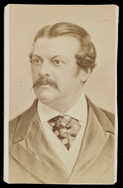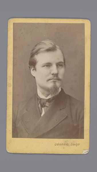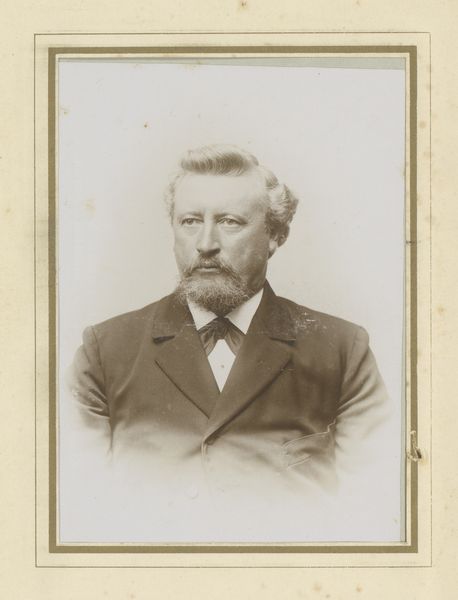 Editor: This is a gelatin-silver print, titled "Portret van een onbekende man," dating somewhere between 1857 and 1882, by Charles Lemoine. It feels incredibly formal, almost staged. What strikes you when you look at this photograph? Curator: Immediately, I'm drawn to the question of anonymity and representation within photographic portraiture of this period. We see the sitter carefully posed, likely to project a certain social standing through dress and comportment, but stripped of his name. Who had the privilege of being remembered, and who was relegated to “unknown”? How does this dynamic reflect the power structures of the time, and what narratives are silenced by the absence of identity? Editor: That's interesting, I hadn't considered the anonymity itself as part of the message. Curator: Consider the proliferation of photography during this era. It was becoming more accessible, yes, but access wasn't equal. Think about who commissioned portraits and why. A portrait was often a tool of social mobility, reinforcing gendered norms, or projecting power. By not knowing the sitter’s name, aren't we invited to interrogate the societal structures that shaped the very act of portraiture, and thus the way the individual wanted to be seen, and remembered? How might we challenge the narratives of history through understanding who gets represented, and how? Editor: So it's less about the man himself, and more about what his presence—or lack of a named presence—says about the society he lived in? Curator: Precisely! It allows us to question the limitations and biases inherent in historical records and the construction of historical narratives. It makes us reflect on who has the power to control the narrative. Editor: That's a perspective I hadn't really thought of. I guess every portrait tells a story, even when we don't know all the details. Curator: And sometimes, especially when we don't know all the details.