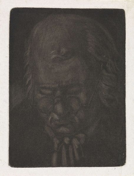 Editor: Elias Stark's "Gezicht van een oude man," which roughly translates to "Face of an old man," from around the turn of the century, 1859-1933. The piece uses graphite and other drawing media. There's an incredible ethereal quality to the portrait, like the figure is emerging from the darkness. How do you interpret this work? Curator: Well, looking at Stark's portrait, it's impossible not to consider the historical context surrounding representations of age. Think about the late 19th and early 20th centuries— what was the prevailing view of aging individuals, particularly within institutional settings like museums and galleries? The portrayal seems to pull away from idealizing age, instead perhaps embracing a stark realism, showing maybe hardship. Does this contrast make you consider any contemporary socio-political issues? Editor: I see what you mean. It does make me think about how different eras treat their elderly. But also I keep returning to how the artwork makes the sitter disappear into the darkness. The figure is so lost in the black void, fading, I wonder about mortality. Curator: That feeling of fading you mentioned connects directly to a visual tradition. The artistic choices surrounding portraiture were rarely innocent. This specific method of representation had certain social implications about aging, loss of visibility, or social importance. Was he deemed somehow 'less worthy' of artistic study and presentation? Editor: Wow, I had not thought about it in terms of social visibility. Thanks for the insight; that lens completely shifted my initial reading. Curator: It’s often the unsaid elements that speak the loudest. This was a fruitful exploration into the nuances embedded within "Gezicht van een oude man.” Editor: Definitely, I appreciate understanding how institutions influence artistic interpretation.