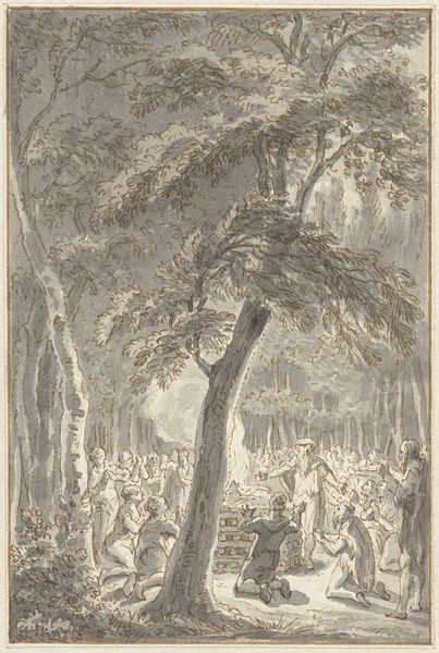 This small drawing, made with pen and wash, imagines the earliest days of the Batavians. Though its creator remains anonymous, the image conjures a constructed history. The Batavians, an ancient Germanic people, were mythologized in the Netherlands as noble ancestors during the Dutch Revolt against Spanish rule. Here, we see a scene of apparent sacrifice or ritual, set against a backdrop of trees. The image speaks to an invented past meant to legitimize a particular vision of Dutch identity. The Rijksmuseum, where this drawing is housed, has played a significant role in shaping national narratives through its collections. Visual codes like the figures' dress and the solemn atmosphere contribute to the sense of a distant, foundational moment. Understanding this drawing requires us to consider the politics of imagery and the social conditions that shape artistic production. Resources in archives and libraries can reveal the historical context, helping us interpret the meaning of art as something contingent on social and institutional forces.