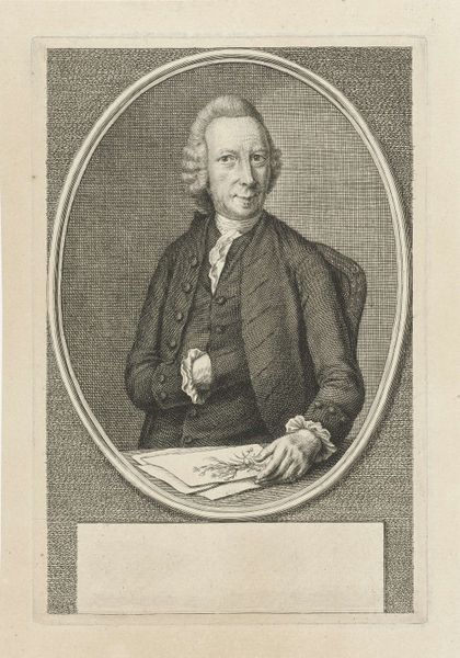 Curator: Looking at this portrait, I'm immediately struck by the subject's world-weary gaze. There's a sense of quiet contemplation, perhaps even resignation, etched into his face. Editor: This is Robert Nanteuil's "Gilles Boileau, father of the poet." Nanteuil, who lived from 1623 to 1678, was a master of the portrait engraving. This work captures more than just likeness; it speaks to the man's role within his family, especially his son. Curator: Indeed. The very formal presentation suggests a societal role, one of patriarchal responsibility perhaps. The trappings of status are present, but muted. Is he complicit in that role, or rebelling? Editor: Portraits like these served specific social functions. They visually reinforced status and genealogy, and they circulated ideas about family and social order. Was this image commissioned and how did it impact the audience? Curator: I see a tension, then, between the individual and the societal pressures placed on him. This tension, between the personal and political, is what truly captivates me about this work. Editor: Absolutely. Considering these dynamics, the work is a significant cultural artifact worth our attention.