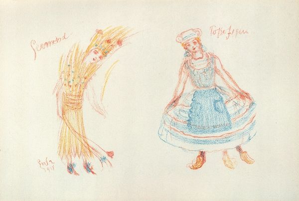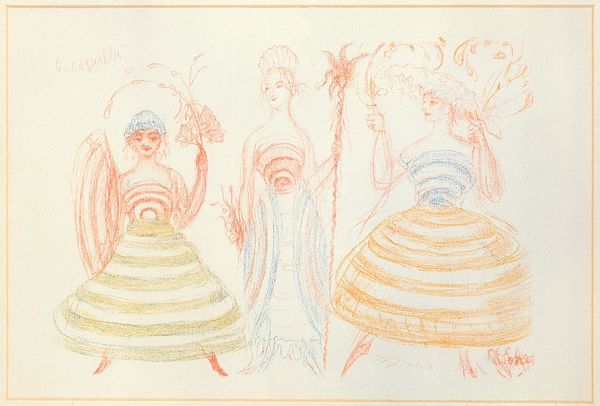James Ensor, a Belgian artist working in the late 19th and early 20th centuries, created "Puerilla & Pollen," a sketch of two theatrical figures. Ensor lived through a period of immense social change, including the rise of industrialization and the burgeoning of modern art movements. In this piece, the characters’ names evoke ideas of innocence and fertility, but their androgynous forms suggest a blurring of gender roles. Ensor’s use of costume becomes a way to play with identity, while the use of muted colors evokes a dreamlike quality, perhaps a nod to the symbolist movement. The figures appear delicate, yet the title hints at underlying tension or conflict. The artist was known for his involvement with avant-garde circles who pushed back against the traditional art establishment. Ensor's art often served as a personal and societal critique, using symbolism and satire to challenge norms. With "Puerilla & Pollen," one can't help but wonder if he was subtly commenting on the societal pressures around gender and identity. It makes you consider how we all perform roles, and how that performance shapes our understanding of ourselves and others.