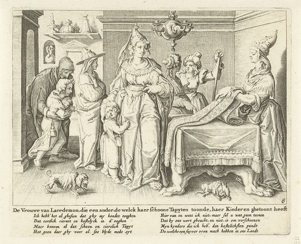 Salomon Savery created this print, “Man krijgt slaag van drie vrouwen,” around 1610. Notice how the lines, etched with precision, carve out a scene of domestic strife. The composition, though chaotic, is structured to draw your eye from the flurry of activity around the man being beaten, to the figures peering through windows and doorways. The harshness of the lines amplifies the violence of the scene. Savery uses a network of hatching and cross-hatching to define form and shadow. The tonal range, from the stark white of the paper to the deep blacks of the etched lines, intensifies the drama. The formal elements work together to create a visual allegory about the disruptive forces of disorder. It’s worth considering how this image challenges conventional gender roles. The women are not passive; they are active agents of retribution. The image presents a world turned upside down, where the traditional power dynamics between men and women are destabilized, inviting viewers to question fixed social meanings.