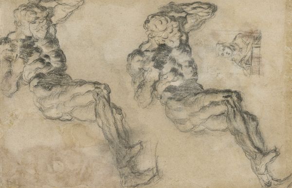 Michelangelo rendered this 'Study of Adam' in sanguine chalk, capturing the divine spark in human form. Note the outstretched hand, not merely a physical detail, but a conduit for divine energy. This gesture echoes through time, recalling the classical tradition of orators and gods bestowing blessings, and further back, the very act of creation as depicted in ancient mythologies. Remember, the hand appears in Egyptian art and religious iconography, often symbolizing power and control. Observe, too, how Michelangelo's hand is reaching but not quite touching, a poignant depiction of potential and yearning, which engages our collective memory of divine encounters and resonates on a primal, emotional level. This tension between the human and the divine has resurfaced in countless artworks, evolving with each cultural retelling, yet always retaining its potent symbolic charge.